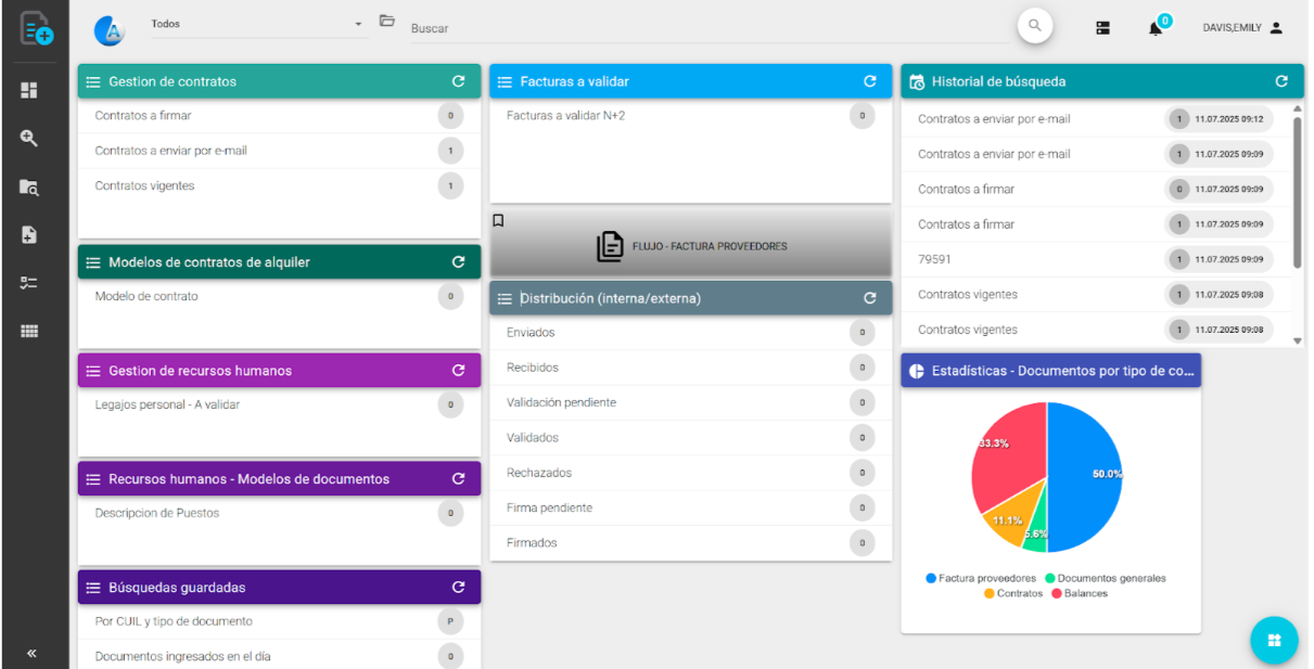 Cumplimiento normativo, Flujo de trabajo, Distribución, Envío por email, Firma calificada, Archivo legal, Trazabilidad.