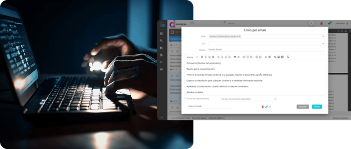 Doc.AI y Auto import, clasifican vía IA generativa los documentos al entrar, impide el ingreso de duplicados e indexa el documento para la búsqueda contextual. OCR / ICR inteligente extraen los datos de los escaneos para que ningún contenido queda “oscuro”.